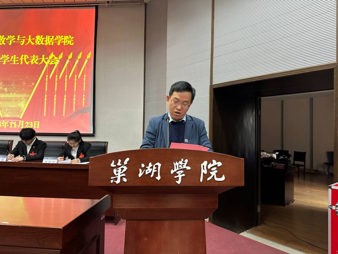 2024年11月23日上午8:30,数学与大数据学院第五次学生代表大会在致知楼报告厅隆重开幕。数学与大数据学院党委副书记、纪委书记郝江锋,团委副书记冀祥麟、殷慧敏,校学生会代表葛文楷,校社团发展中心主任李有帮出席,全体学生代表参加。开幕式由冀祥麟主持。
