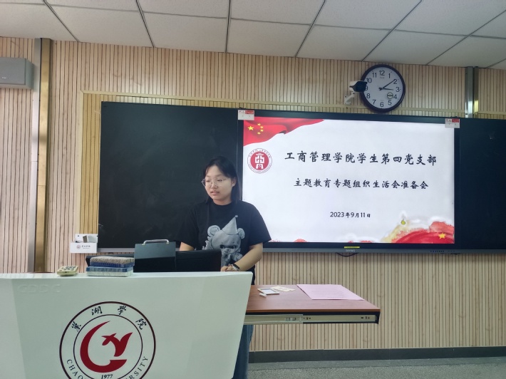 为推动主题教育专题组织生活会的顺利召开,认真做好前期准备工作,工商管理学院学生第四党支部于9月11日下午在博学楼514教室开展主题教育专题组织生活会准备会。本次会议由工商管理学院学生第四党支部书记任洁指导,学生党员张子玉主持,全体党员共同参与。