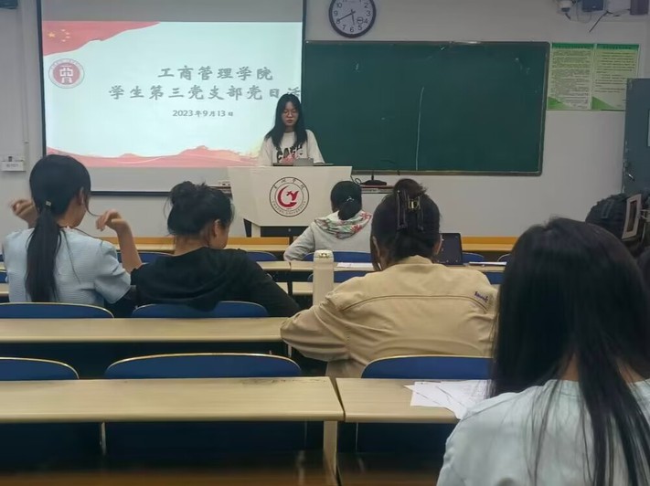为加强党员理想信念,增强党组织的凝聚力,发挥党组织战斗堡垒和党员先锋模范作用,工商管理学院学生第三党支部于9月13日下午在博学楼512教室开展主题党日活动。本次党日活动以“学思想、强党性、重实践、建新功”为主题,工商管理学院学生第三党支部书记刘国主持,全体党员参与。