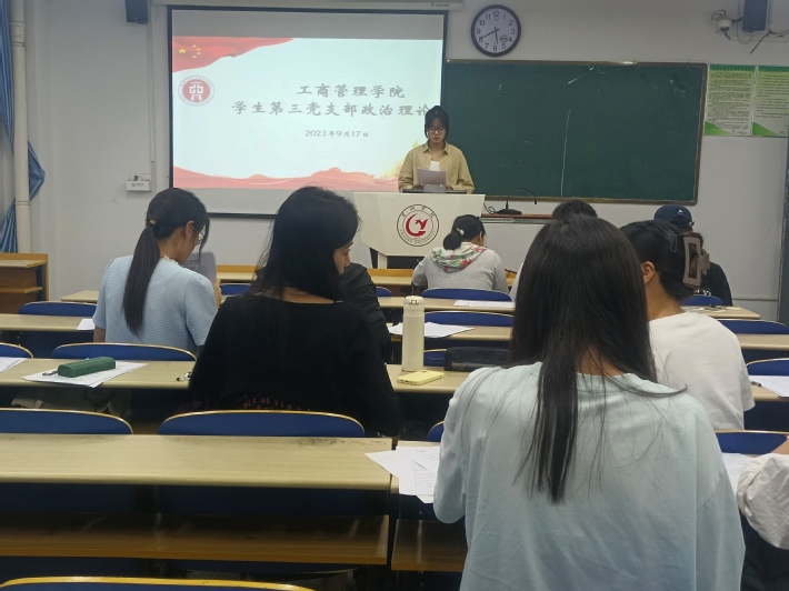 为加强理论学习,把握政治方向,筑牢思想之基,工商管理学院学生第三党支部于9月17日下午在博学楼510教室开展九月份政治理论学习。本次会议以学习习近平在中央统战工作会议上的重要讲话为主题,工商管理学院学生第三党支部书记刘国主持,全体党员参与。
