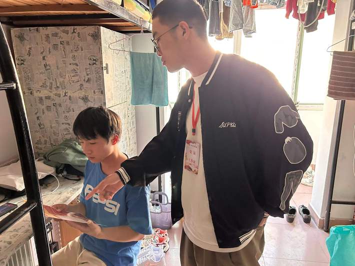 首先,各学生党员在宿舍楼下集合,统一佩戴党员工作证,许沙对现场人员进行工作分配,强调在宣传的过程中,学生党员的行为举止要文明礼貌,注意用词妥当,彰显学生党员的文明风采。随后,学生党员对新生宿舍进行走访,并以饱满的热情投入到与新生的交流中,一方面从日常生活中深入了解新生情况,关心新生入住后所遇到的各种问题并进行及时地沟通,帮助新生同学们尽快适应大学生活;另一方面为新生分享参加比赛的经验,鼓励新生同学们利用课余时间参加一些学科比赛来锻炼自己,并表示希望新生同学们在大学期间认真学习专业知识,实现全面发展。最后,学生党员们也认真为新生解答关于入党流程以及发展党员过程中的考核要求与注意事项,鼓励新生同学们积极向党组织靠拢。学生党员陈玉婷表示,通过与大一新生们简单的交谈,使我们更加明确地感受到了要不断充实党员队伍,推动党组织建设,就要始终坚持创新与传承并举,让党员风貌在新时代青年中得到传承和发扬。