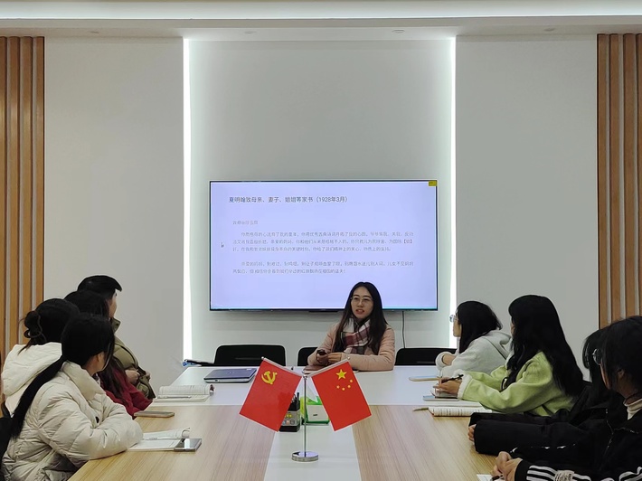 活动伊始,储岚霖首先带领在场的学生党员诵读了夏明翰致母亲、妻子、姐姐等家书。夏明翰先生在给母亲的家书中写到“亲爱的妈妈,别难过,别呜咽,别让子规啼血蒙了眼,别用泪水送儿别人间。儿女不见妈妈两鬓白,但相信你会看到我们举过的红旗飘扬在祖国的蓝天!”拳拳的母子之情跃然纸上,随后,在夏明翰写给姐姐和妻子的信中,他依然表达了自己对于革命事业的无悔与坚守。接着,储岚霖又带领大家诵读了茂县党校教师易敏写给儿子的信。阅读之前储岚霖向大家解释道,这是一封父亲写给儿子希望其奉公守法、廉洁清明的叮嘱信件。父亲用于谦两袖清风不谄媚于当权太监王振的故事细细祝福儿子“我们希望你仰慕他清高潇洒的姿态,种下‘廉洁’的种子。”他又写到“曾经我们告诉你,民族英雄林则徐曾说过的那句话:‘子孙若如我,留钱做什么?贤而多财损其志。子孙不如我,留钱做什么?愚而多财则增其过。’ ”。父亲认为,正人必先正己,治国必先治家,他说:“我们不仅仅管住自己,还要管好子女、配偶等亲属,廉洁治家是廉洁从政的重要一环”。信件的最后,父亲再次叮嘱儿子,希望儿子始终以优良的工作作风自勉和自重,继续守住自己的原则,保有那颗难能可贵的初心,堂堂正正做人、老老实实干事、清清白白为官。