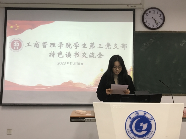 为深入学习贯彻习近平新时代中国特色社会主义思想,进一步营造读书氛围,工商管理学院学生第三党支部于11月16日下午在博学楼512教室开展特色读书交流会。工商管理学院学生第三党支部书记刘国主持,全体党员参与。