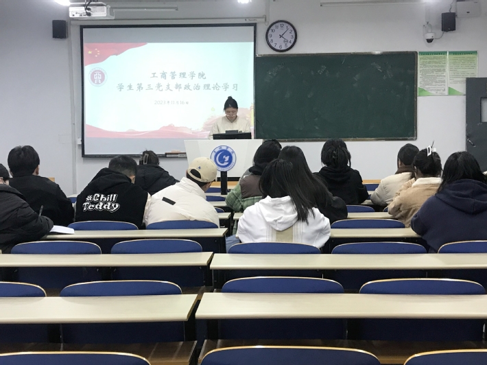 为加强政治理论学习,提升政治理论水平,工商管理学院学生第三党支部于11月16日下午在博学楼512教室开展十一月份政治理论学习。本次会议以学习坚持和发展新时代“枫桥经验”综述为主题,工商管理学院学生第三党支部书记刘国主持,全体党员参与。