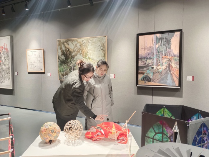 首先,任洁为大家介绍了本次政治理论学习的主题是学习“习近平给中国美术馆的老专家老艺术家的回信”,遵循美育特点,弘扬中华美育精神,让祖国青年一代身心都健康成长。接着,学生第四党支部全体成员在新葡的京集团350vip8888官网美术馆入口集合,她嘱咐大家在参观的过程中不要大声喧哗,认真聆听美术学院老师对作品的介绍,同学们进入美术馆,美术馆内油画、版画、雕塑、山水画等画种类型丰富,创作层次高,在美术学院老师的讲解下同学们驻足浏览一幅幅画作,品读一件件艺术品,在其中领略中华民族的文化之美、历史之美、山河之美。随后,她强调本次活动是深入学习感悟新时代青年“为人民而艺术”的新作为、新担当,感受文化力量,树立文化自信。最后,任洁对本次活动进行总结,中国美术馆有力见证了新中国美术事业的蓬勃发展,在典藏精品、展览展示、公共教育、对外交流等方面守正创新,取得了积极成效,感受传统文化之美,赋能文化自信自强,增强党性修养。
