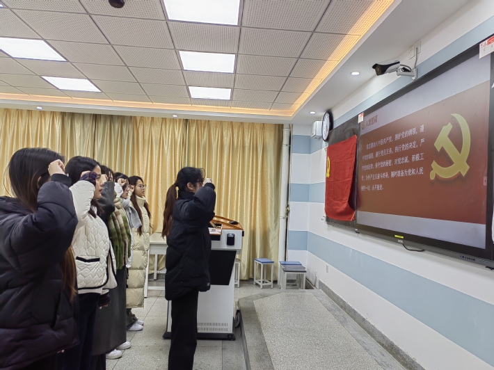 会议在庄严肃穆的国歌声中正式拉开序幕。首先,杨颖等7名同志依次汇报了对党的认识、入党动机、本人履历等情况,支部书记许沙代表支部向大会报告对发展对象的审查情况。随后,与会党员对发展对象能否入党进行充分讨论,与会人员一致认为杨颖等7名同志思想觉悟高、业务能力强、工作认真,符合中共党员的标准,同意她们加入中国共产党。全体新接收的预备党员进行了庄严的入党宣誓。会议同时还讨论表决了戴婷、王爱鑫两位预备党员转正的事项。两位同志对预备期一年内自己的工作、生活、思想、学习等情况进行了汇报,与会同志认真倾听,充分发表意见。在经过严格的会议流程和庄重表决后,与会人员一致通过了两位同志的转正申请。最后,许沙对新接收的预备党员和如期转正的预备党员表示祝贺,希望他们牢记党员身份,进一步提升思想政治水平,提高自身的党性修养,发挥党员先锋模范带头作用。