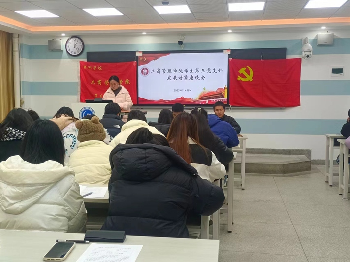 为进一步做好支部发展对象入党前置教育工作,工商管理学院学生第三党支部于11月18日中午在博学楼410教室召开关于征求邢雅雯等12名同学列为发展对象意见的座谈会。本次会议由学生第三党支部书记刘国主持,对邢雅雯等12位同学是否列为发展对象进行讨论和表决,支部正式党员、预备党员及群众代表参与。