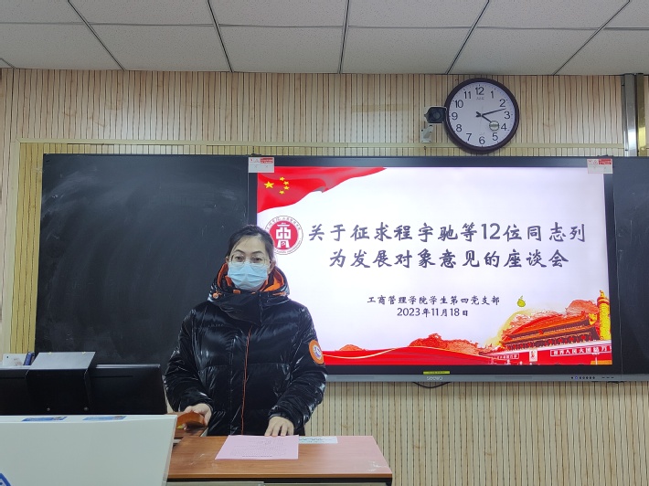 为进一步做好发展党员工作,根据《中国共产党章程》和《新葡的京集团350vip8888官网发展党员工作手册》,工商管理学院学生第四党支部于11月18日上午在博学楼514教室召开党内外群众座谈会。本次会议由学生第四党支部书记任洁主持,主要听取党内外群众关于程宇驰等12名入党积极分子是否列为发展对象的意见,学生第四党支部部分学生党员和班级学生代表参会。