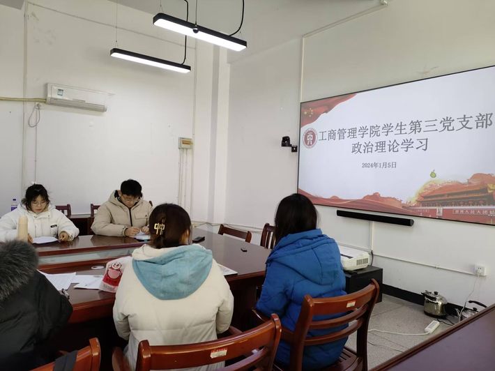 为提高思想政治素质,加强理想信念教育,工商管理学院学生第三党支部于1月5日下午在博学楼一楼会议室开展一月份政治理论学习。本次会议以学习习近平总书记在纪念毛泽东同志诞辰130周年座谈会上的重要讲话为主题,工商管理学院学生第三党支部书记刘国主持,全体党员参与。