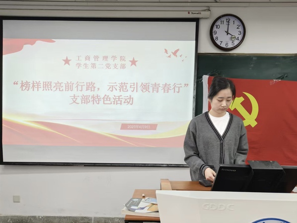 为引导党支部成员汲取榜样精神,在示范带动下坚定理想信念,工商管理学院学生第二党支部于4月9日下午在博学楼511教室开展“榜样照亮前行路,示范引领青春行”支部特色活动。此次活动由工商管理学院学生第二党支部书记袁晓琳主持,工商管理学院学生第二党支部全体党员及入党积极分子参加。