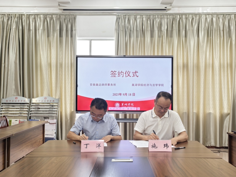 为进一步拓宽毕业生就业渠道,加强校所双方联系交流,9月18日上午,安徽巢达律师事务所主任丁洋一行5人到经济与法学学院开展座谈交流。经济与法学学院党委书记徐兆武、院长施玮、党委副书记解雪梅、法学系教师朱鹤群及就业联络员赵慧中参加活动。