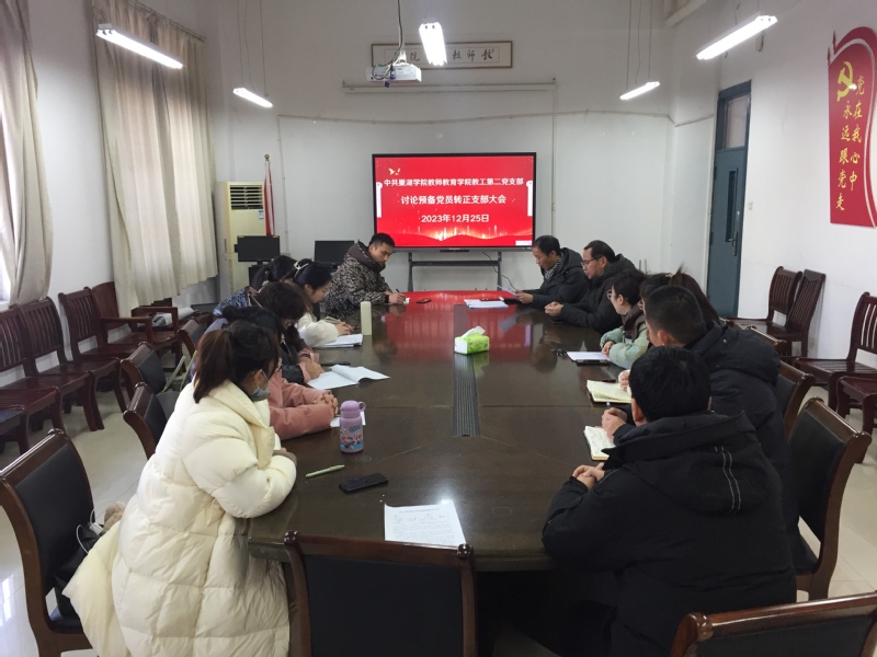 12月25日下午,教师教育学院教工第二党支部在学院党员活动室召开支部党员大会,讨论预备党员转正。会议由支部书记左劲中主持。