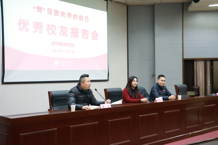 为增进母校与校友的沟通交流,充分发挥优秀校友在学生成长成才中的榜样示范作用,教师教育学院于2024年12月13日下午在致知楼报告厅举办优秀校友报告会。邀请上海定山信息技术有限公司销售总监储江燕、上海体育科学研究所副研究员刘书强两位优秀校友返校作报告。会议由学院副院长蔡广主持,学院党委副书记左劲中、副院长郑艳和200余名学生到会聆听报告。