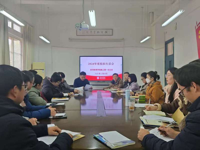 2025年2月26日下午教师教育学院教工第一党支部在艺术楼一楼会议室召开2024年度组织生活会。教师教育学院党委副书记胡传双到会指导,支部全体党员参加,会议由党支部书记甘超主持。