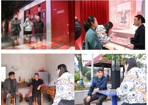 调研团队一行首先抵达无为市文化馆,与市文旅局副局长陈雪、文化馆馆长黄代平、副馆长曹晨等进行了座谈交流,深入了解地方文化资源与革命历史传承。并就校地合作等相关事宜进行交流。随后,团队前往市博物馆,通过观摩珍贵史料,进一步加深了渡江战役历史背景及马毛姐英雄事迹的认知。最后,大家深入马毛姐的家乡马坝村,进行实地走访,刘渡镇党委委员、组织委员蔡燕,马坝村党委书记热情接待并详细介绍了相关情况。