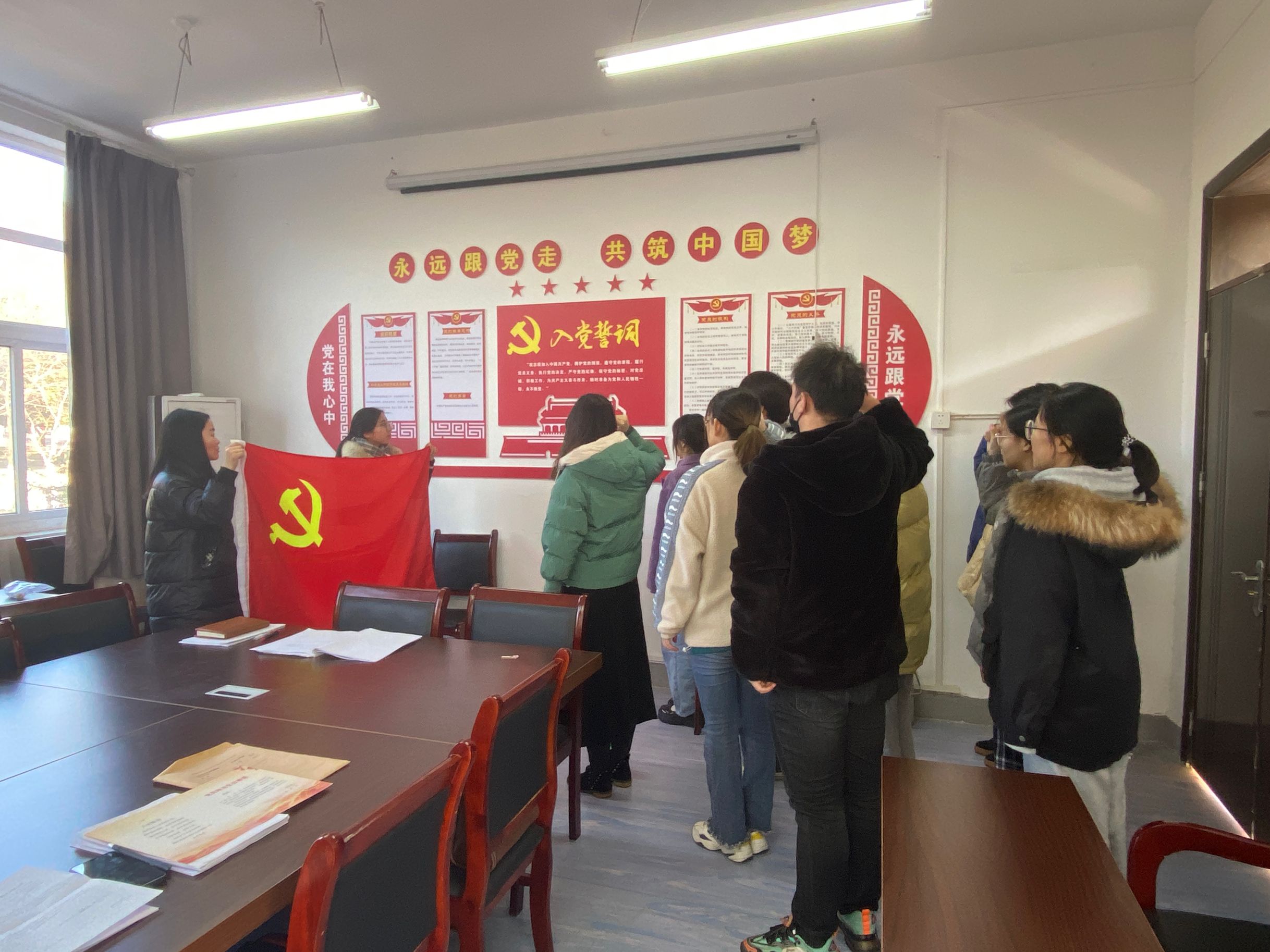随后,在党员活动室,为支部新发展的4名中共预备党员举行了入党宣誓仪式。孙圆圆带领新发展的中共预备党员面向党旗进行庄严宣誓,同时老党员也重温了入党誓词,回顾初心使命,进一步强化党员身份意识和责任意识。