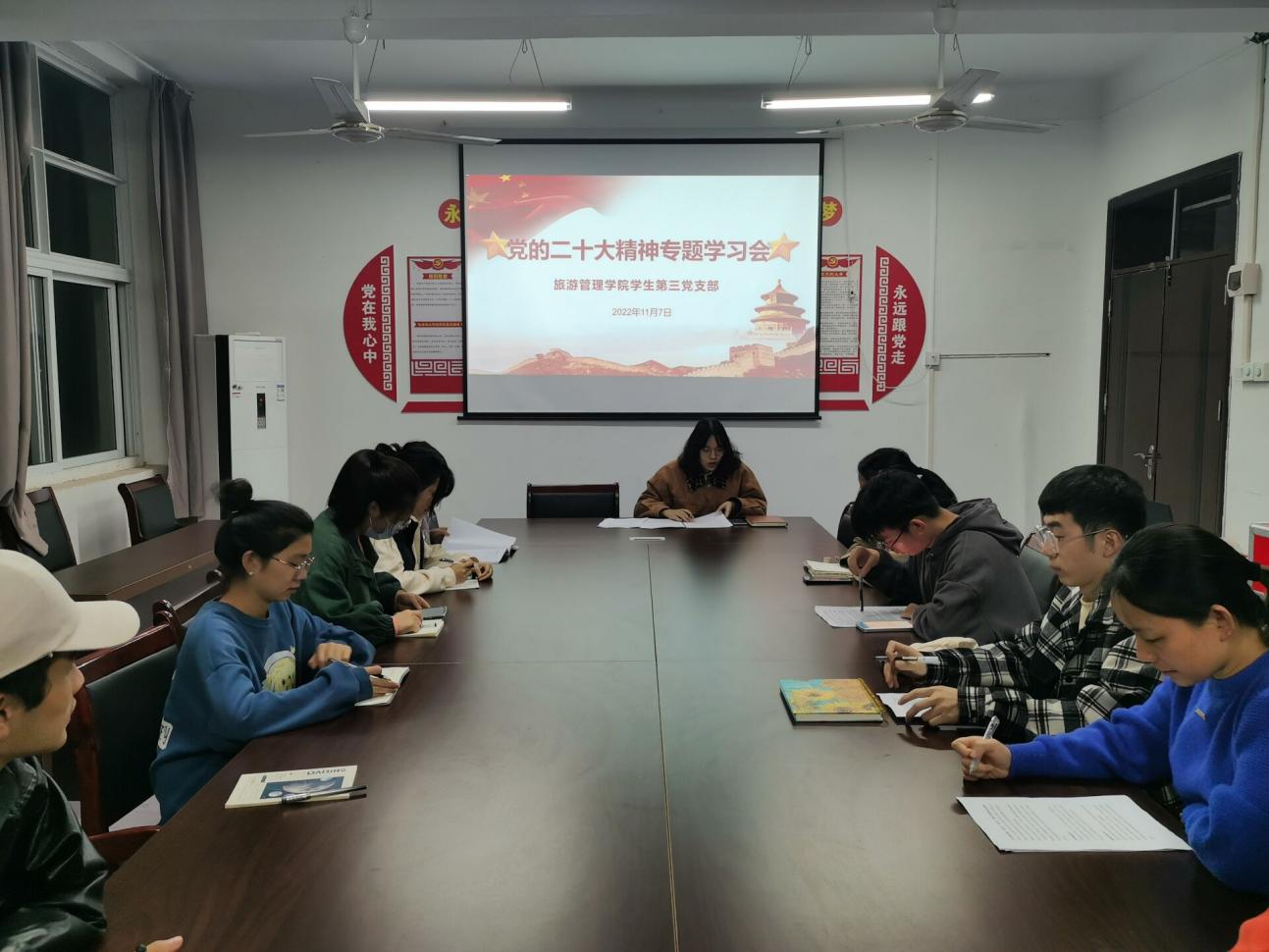 旅游管理学院学生第三党支部召开党的二十大精神专题学习会