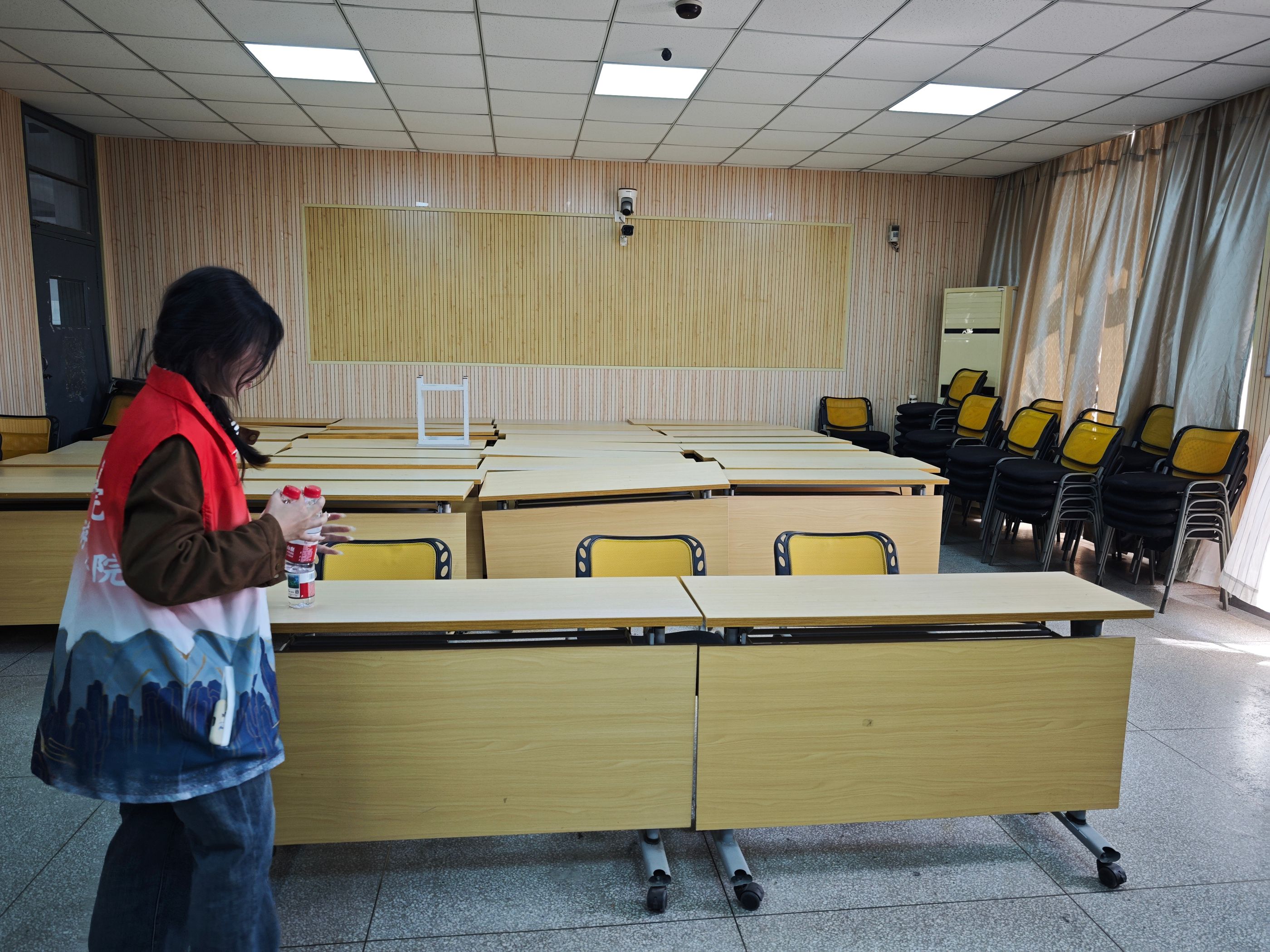 活动中,支部党员前往博学楼考场进行考前布置工作。大家分工协作,对考场教室进行全面清扫,整理并摆放桌椅,确保每个环节细致到位。经过数小时的忙碌,考场环境整洁有序,为考生营造了温馨舒适的考试氛围。