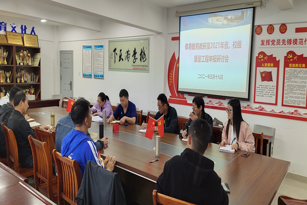 为进一步推动体育教育教研室教学研究工作,促进教师教育教学研究能力提升,加强体育教育专业课程建设。体育教育教研室于5月19日下午组织召开2021年度质量工程项目申报研讨会,会议由教研室主任周雪华主持,教研室全体成员参与。