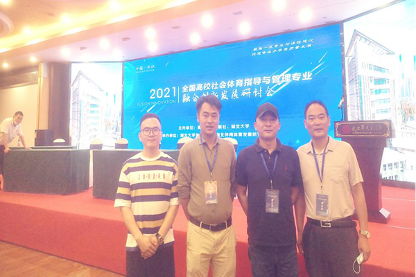 为深入贯彻习近平新时代中国特色社会主义思想,贯彻落实全国教育大会及《教育部办公厅关于实施一流本科专业建设“双万计划”的通知》精神,促进社会体育指导与管理专业高质量发展,体育学院副院长赵胜国、教授樊贤进以及讲师艾显斌、满进前参加了高等教育出版社及湖北大学主办的2021年全国高校社会体育指导与管理专业融合创新发展研讨会。