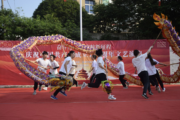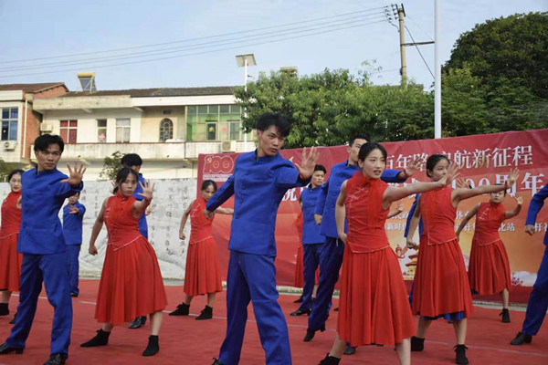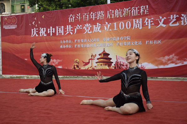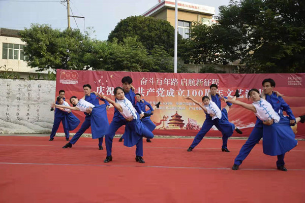为庆祝中国共产党百年华诞,落实落细“我为群众办实事”实践活动,进一步推进乡村文化振兴建设,做好体育文化思政工作,强化基层党组织的战斗堡垒作用,6月29日,体育学院党委联合巢湖市栏杆镇政府在栏杆镇文化中心广场举办了主题为“奋斗百年路 启航新征程”庆祝中国共产党成立100周年文艺演出活动,体育学院党员、团员青年共计百余名参与本次演出。