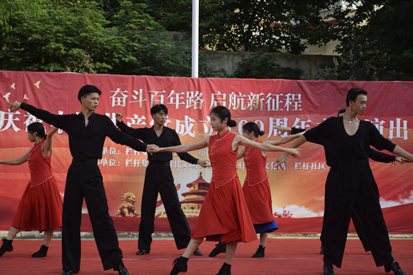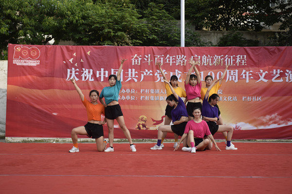 演出以中华传统特色艺术项目《舞龙舞狮》拉开了帷幕,这一节目承载着对伟大祖国河清海晏、时和岁丰的美好祝福,给文艺汇演平添了喜庆与热闹;体育舞蹈《追寻》表达了“追梦人”的美好愿景;朗诵《我是党员我先上》、歌曲《在灿烂阳光下》讴歌了“平凡英雄”;古典舞《春三月》让观众领略了中国传统艺术的魅力;有氧操《青春魅力》、啦啦操《青春有你》展现出新时代中国青年的青春活力;武术《短棍》表现了中华武术文化的博大精深;健美操《大中国》呈现美好新时代,展现中国精气神;节目《黄河》音乐磅礴,舞姿振奋人心,带给观众们精彩绝伦的视觉盛宴。同时栏杆镇政府也积极筹划各类节目,歌曲《青藏高原》《颂歌飞进中南海》唱出盛世锦绣繁华;表演者以曼妙的舞姿演绎《灯火里的中国》,引发观众高度共鸣;大鼓书《建党百年我要唱》彰显了地方文化特色,赢得观众们的连连喝彩与欢呼……整场演出以活力十足、意蕴悠长的歌舞与诗赋,展现出中华文化的蓬勃生机,获得观众们的广泛好评,为祖国百年华诞献上最美好的真挚祝福。