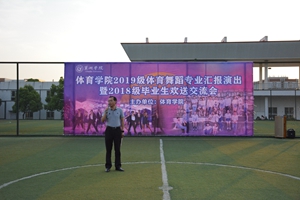 5月30日晚6:30,由体育学院主办的2019级体育舞蹈专业汇报演出暨2018级毕业生欢送交流会在五人制足球场正式拉开帷幕。2018级体育舞蹈专选毕业班同学们、2019级和2020级体育舞蹈专选班同学们以及其他师生员工,部分毕业生通过线上平台参与此次欢送交流会。体育学院院长姚磊,体育学院副院长赵胜国出席本场专业汇报演出交流会,交流会由体育舞蹈专选班丁源源老师主持。