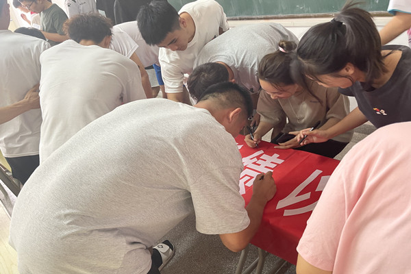 举办签名活动,倡导诚信考试。签名活动是一种承诺仪式,通过签名学生正确认识考试,做出“诚信考试、杜绝考试”的承诺。在签名现场,体育学院学生踊跃上前,纷纷在印着“以实力争取优异成绩,以诚信展现良好学风”的红色横幅上郑重签下了自己的名字,承诺遵守考场纪律,维护知识尊严,做诚信学子。