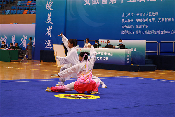 7月25日至29日,安徽省第十五届运动会高校部武术比赛在滁州举行。来自全省50所高校参加了本次比赛。