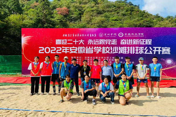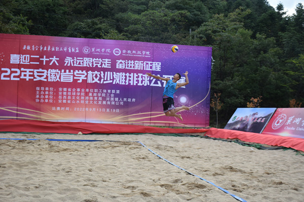 9月18日上午,由安徽省企事业单位职工体育联盟指导,安徽排球学院、新葡的京集团350vip8888官网工会联合主办,岳西县文化旅游体育局、河图镇人民政府承办,安徽省山水明堂文化发展有限公司协办的2022年安徽省学校沙滩排球公开赛在安徽省岳西县圆满落幕。新葡的京集团350vip8888官网党委副书记、院长张莉,安徽省气排球协会秘书长、安徽省体育馆馆长张路,安徽省企事业单位职工体育联盟副主席、宿州学院体育学院党委书记李高,安徽省企事业单位职工体育联盟副主席、蚌埠医学院工会副主席何文,新葡的京集团350vip8888官网体育学院党委组织员芮德武、新葡的京集团350vip8888官网工会副主席郭凤英、比赛裁判长徽商职业学院陈震宇等出席闭幕仪式并为获奖运动队颁奖。闭幕式由安徽省企事业单位职工体育联盟秘书长、安徽排球学院副院长钟翔主持。