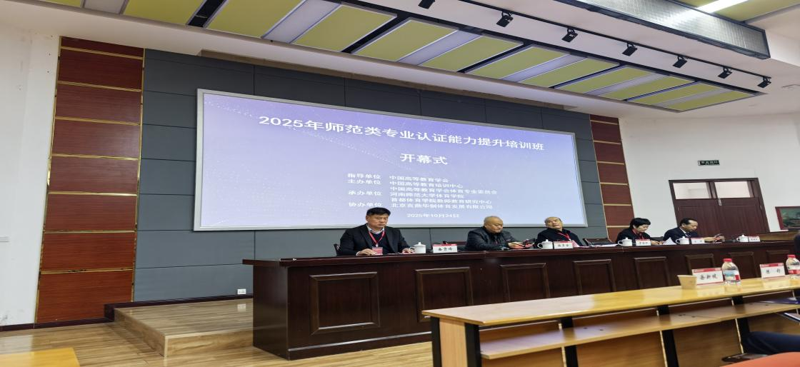 为进一步提升师范类专业建设水平,深化教育教学改革,2025年10月23日至26日体育学院副院长杨叶红、体育教育训练系主任周雪华、姜杨及张梓正老师一行四人,参加由河南师范大学主办的“师范类专业认证能力提升”专题培训班。