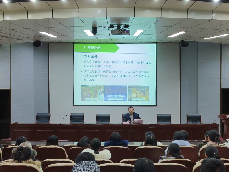 2023年12月15日下午,安徽农业大学谢忠稳教授在致知楼报告厅作了题为“茶的营养与健康功能”的学术报告。报告会由生环学院副院长(主持工作)陈小举主持,中心研究人员及2023级全部新生聆听了此次报告。