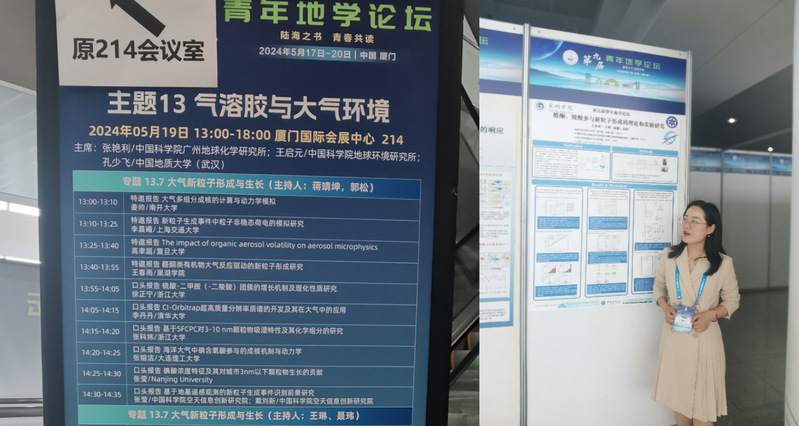 第九届青年地学论坛于2024年5月17日-20日在福建省厦门市国际会展中心举行。青年地学论坛是由中国青年地球科学家发起,以杰出科学家为顾问,青年学者及研究生为参与主体而搭建的自由、平等、争鸣的交流平台。本次论坛共设置20个主题、280个专题,安徽省环巢湖乡村振兴协同技术服务中心(培育)(以下简称“中心”)王春雨博士参加S13“气溶胶与大气环境”主题并以“醛酮类有机物大气反应驱动的新粒子形成研究”为题作特邀报告。