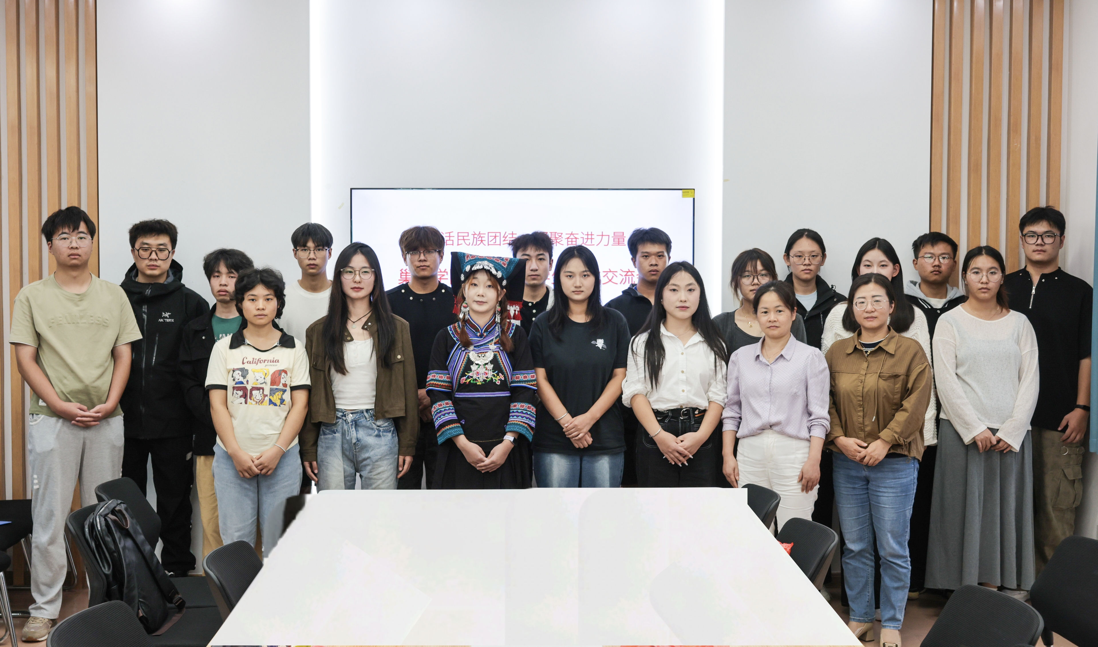 文化交流会在轻松温馨的氛围中圆满结束。少数民族同学们纷纷表示,切实感受到了学校的温暖关怀,此次交流会增强了自己对中华民族共同体的认同感和归属感,在今后的学习生活中,将自觉提高理论素养和专业知识,以更加坚定的信仰、更加饱满的热情,更加昂扬的斗志,为实现中华民族伟大复兴的中国梦而努力奋斗!(文/陈荣光 图/包善义 初审/金晶 终审/华紫武)