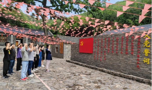 一幅幅历史照片、一幕幕革命场景,让党员同志们重温革命先辈们工作、生活和指挥战斗过的地方,于旧物中重拾红色记忆,于史料中重现峥嵘岁月。师生重回那段艰苦光辉的抗战历史,思想和心灵受到了教育和洗礼。缅怀革命先烈,传承红色基因,汲取力量之源,在旧址前,党员师生在张蕊的带领下,面对鲜艳的党旗,重温入党誓词。