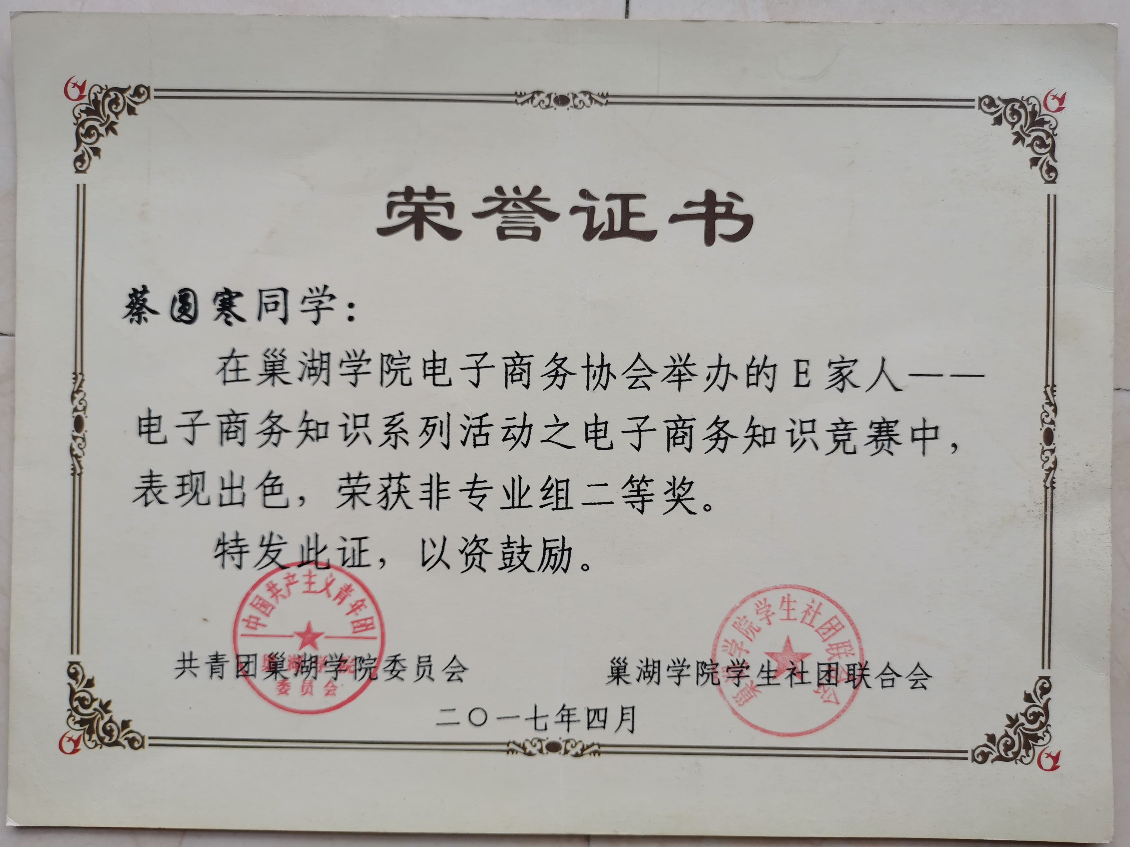 采访手记:“追风赶月莫停留,平芜尽处是春山。”希望每个人都能够珍惜青春年华,与其抱怨身处黑暗,不如自己提灯前行,去打破所有的慵懒沉迷与止步不前,去做一个拼搏向上的新青年,去大胆的追寻梦想,穿花寻路,直入白云深处,浩气展虹霓,明日之你我,一定如星子坠深海,跃起是骄阳!”这是蔡圆寒同学对于学弟学妹们的殷切寄语,也是她对于接下来研究生生涯的自我期盼。(文/程正 图/受访者提供 审/董金山、陈小波)